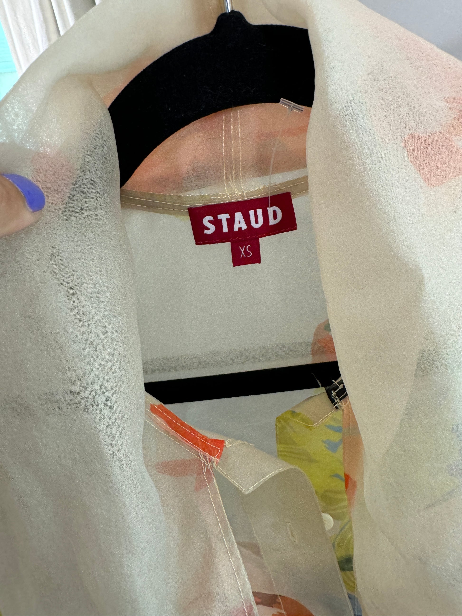 STAUD Maryn Floral Long Sleeve Organza Mini Shirtdress size XS