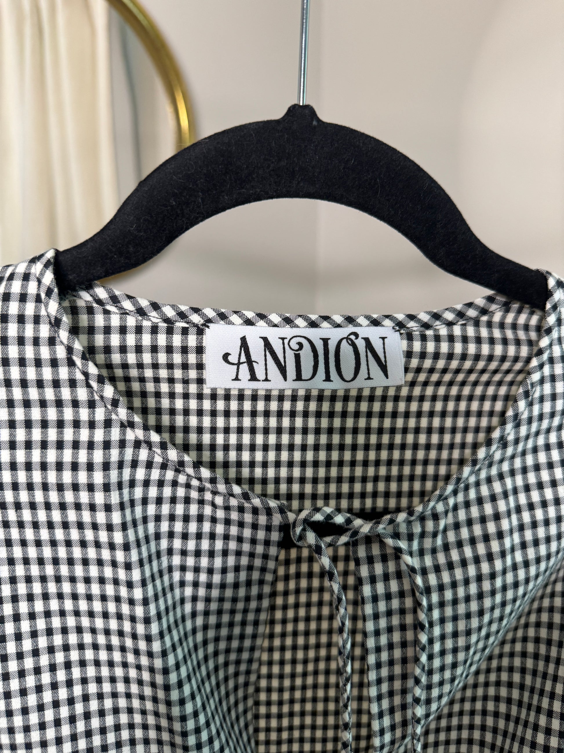Andion Barbara Gingham Bow Blouse size M