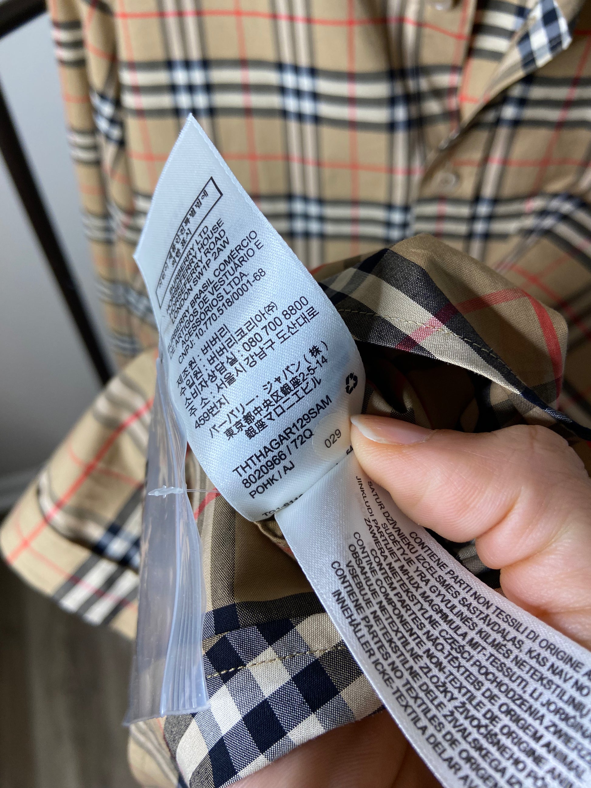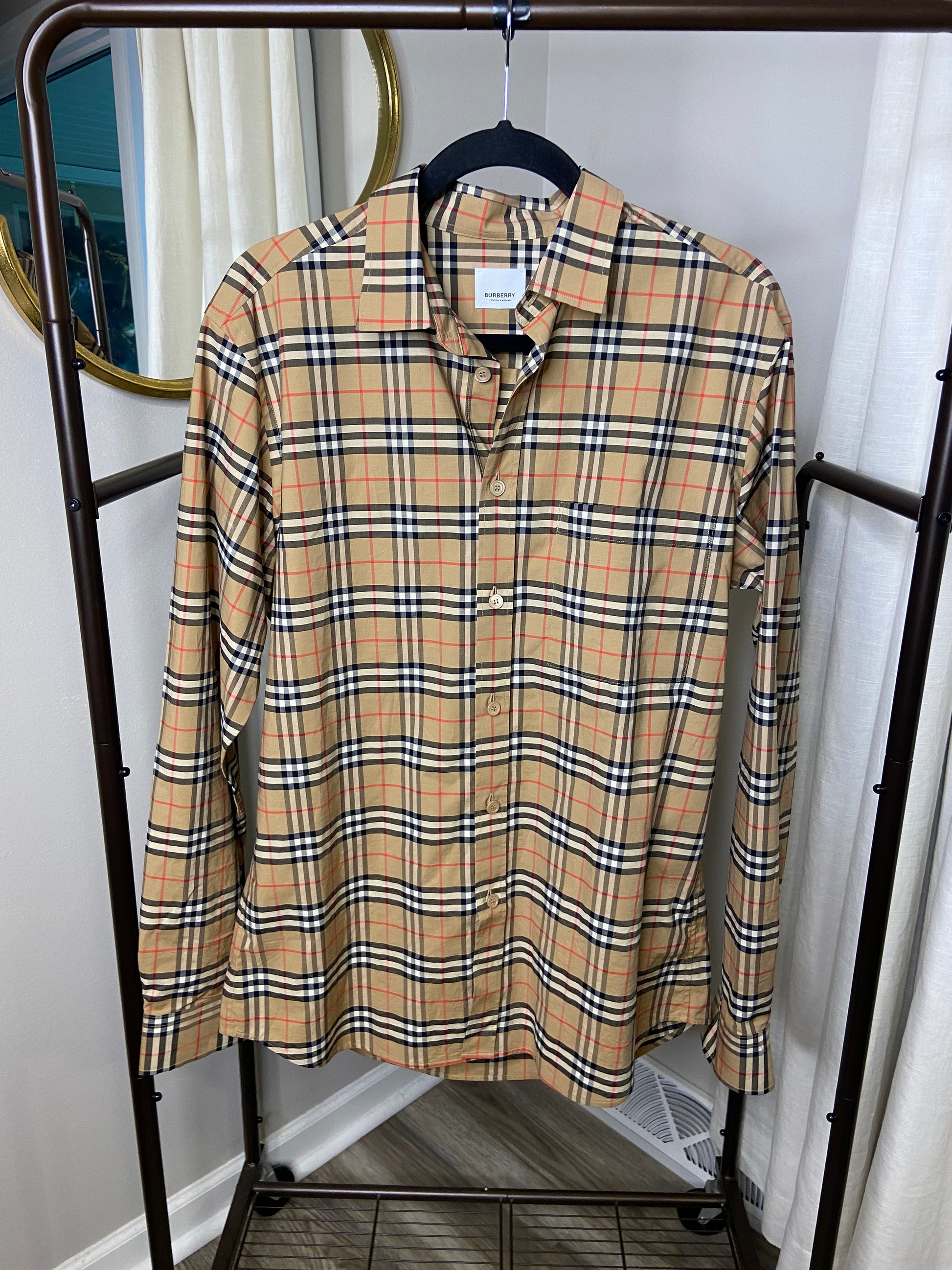 Burberry Simpson Check Cotton Stretch Shirt size L MEN'S