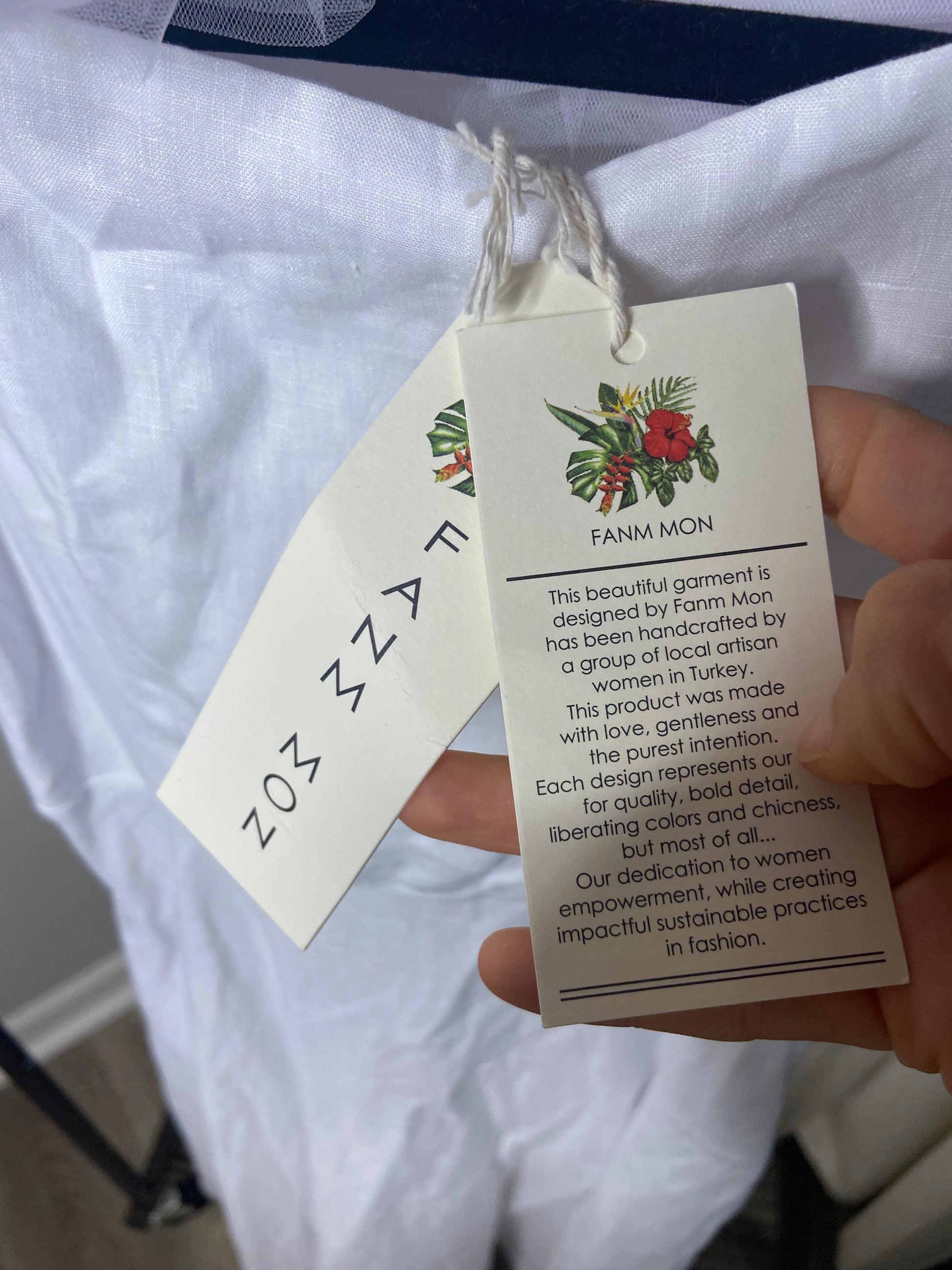 new with tags - missing detachable belt. super pretty embroidery at them.