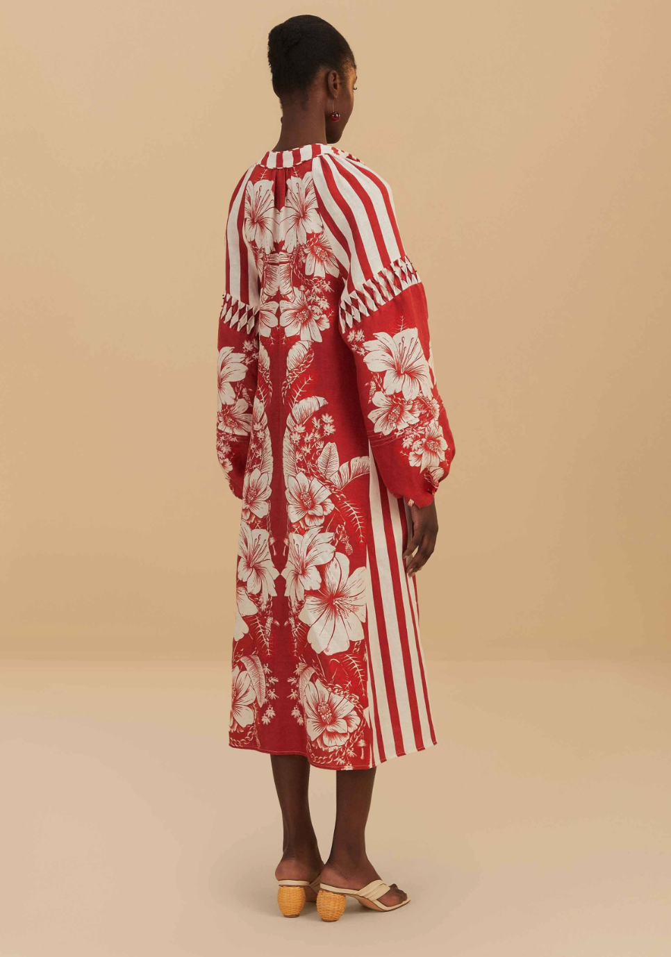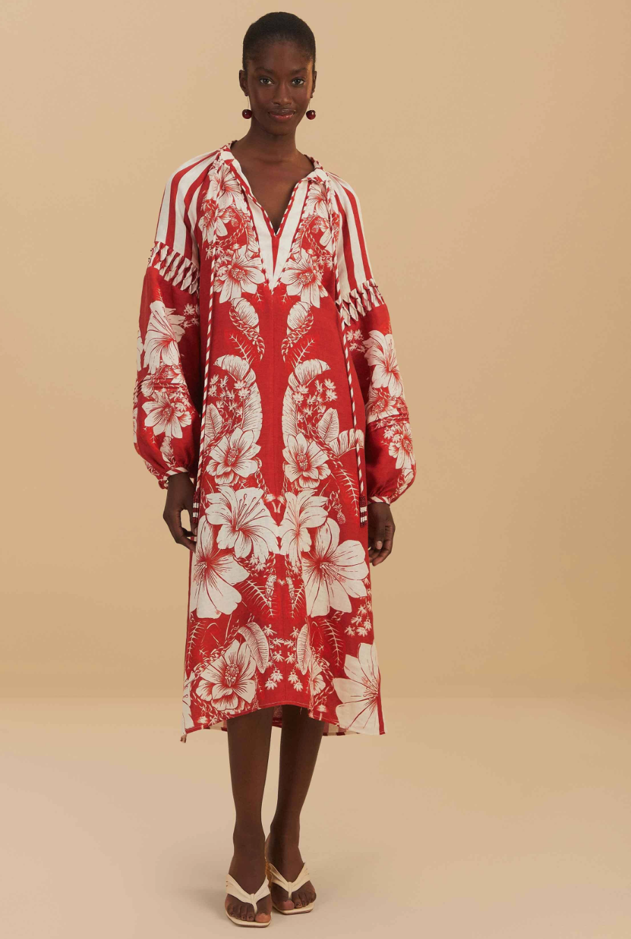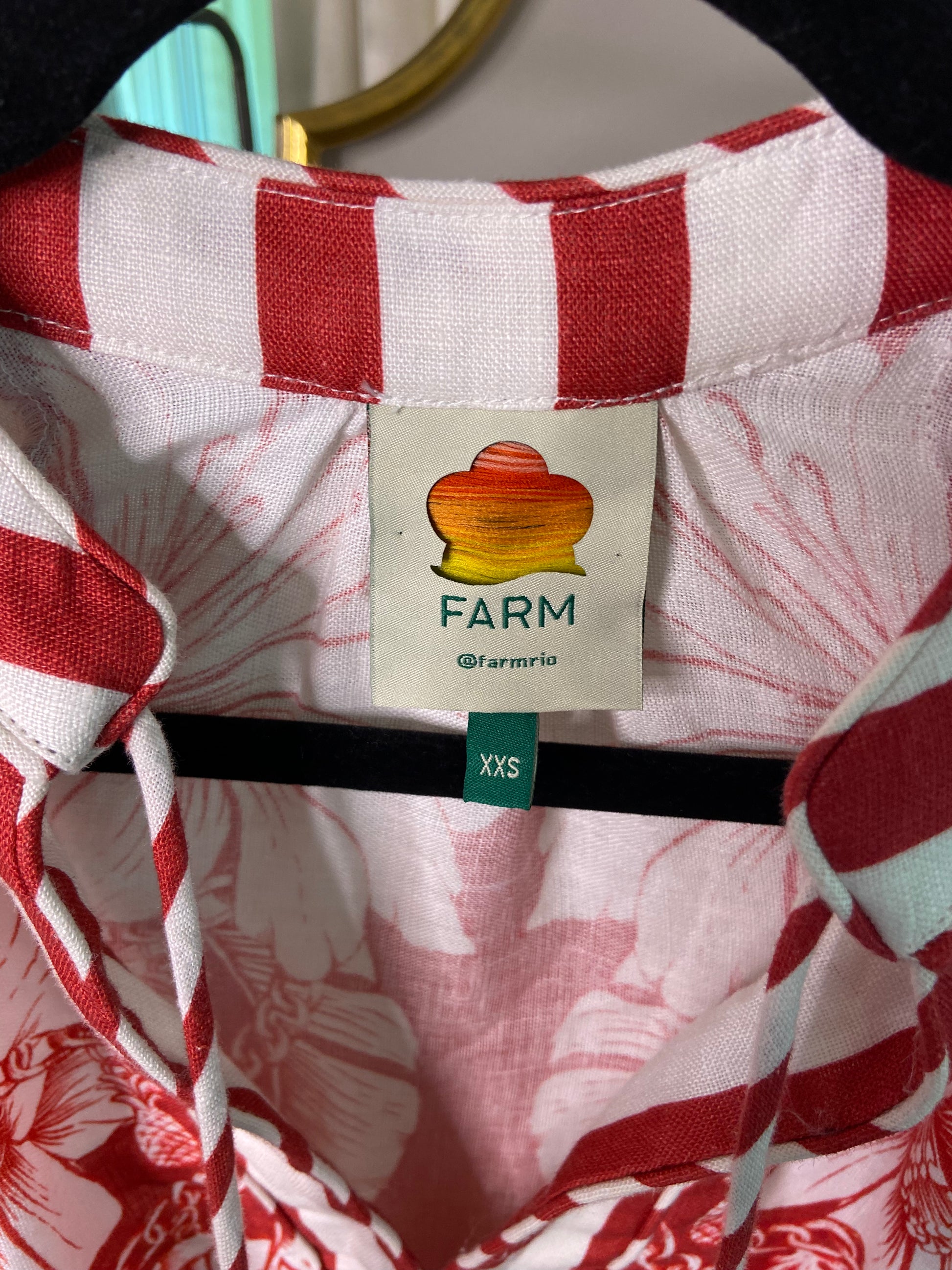 Farm Rio Red Floral Chains Stripes Midi Dress size XXS