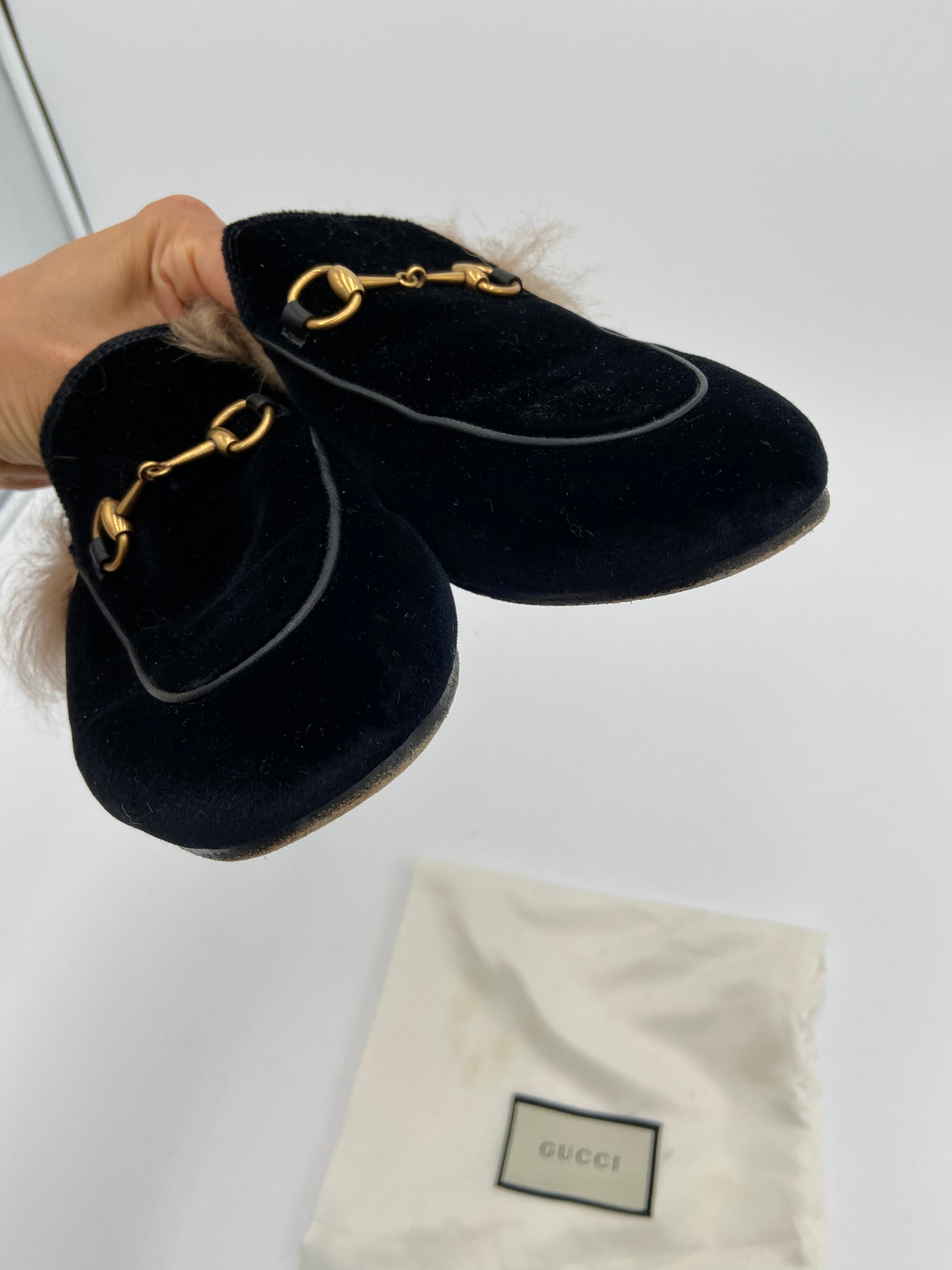 Gucci Gucci Princetown Horsebit-detailed Shearling-lined Velvet Slides