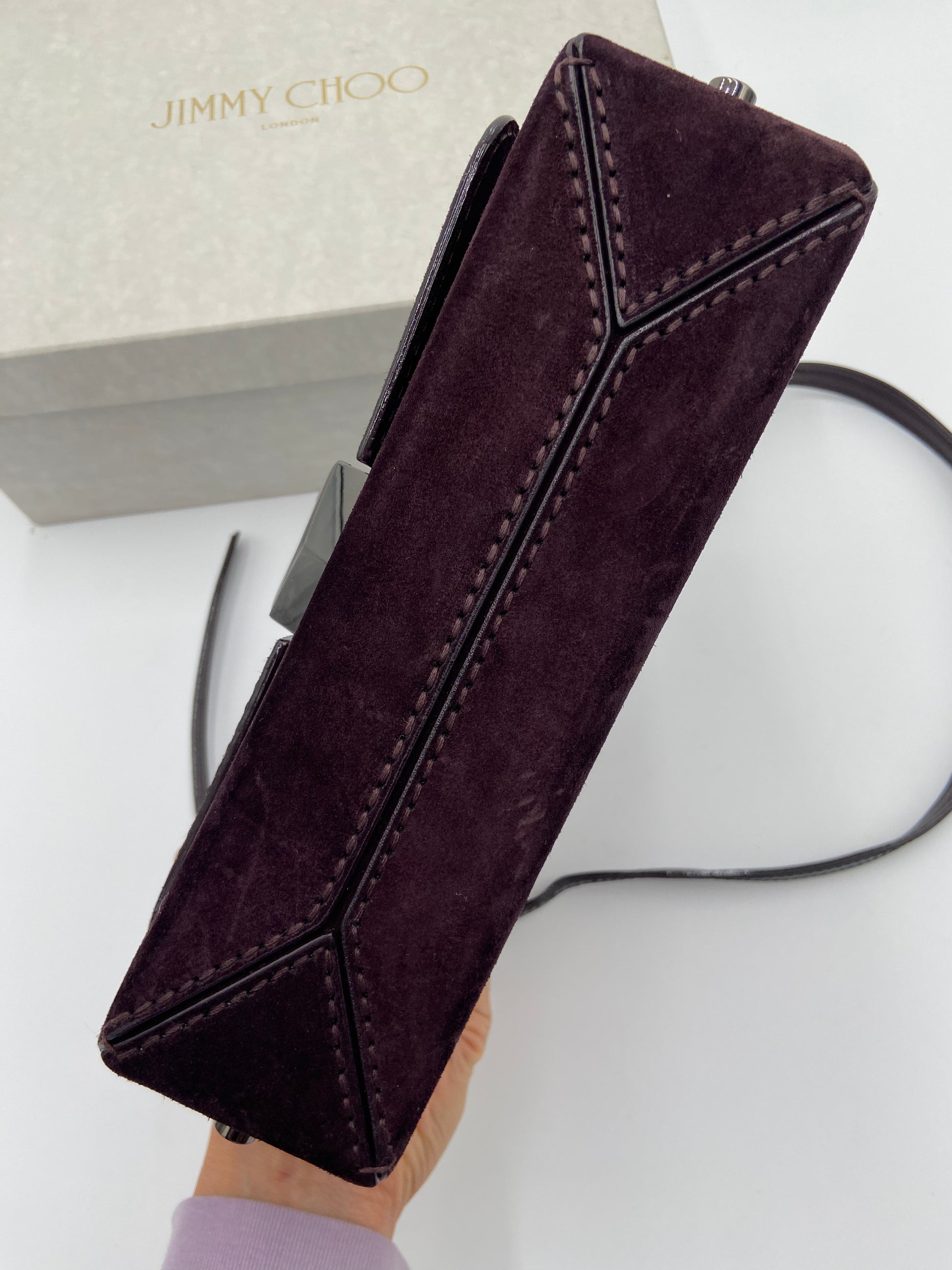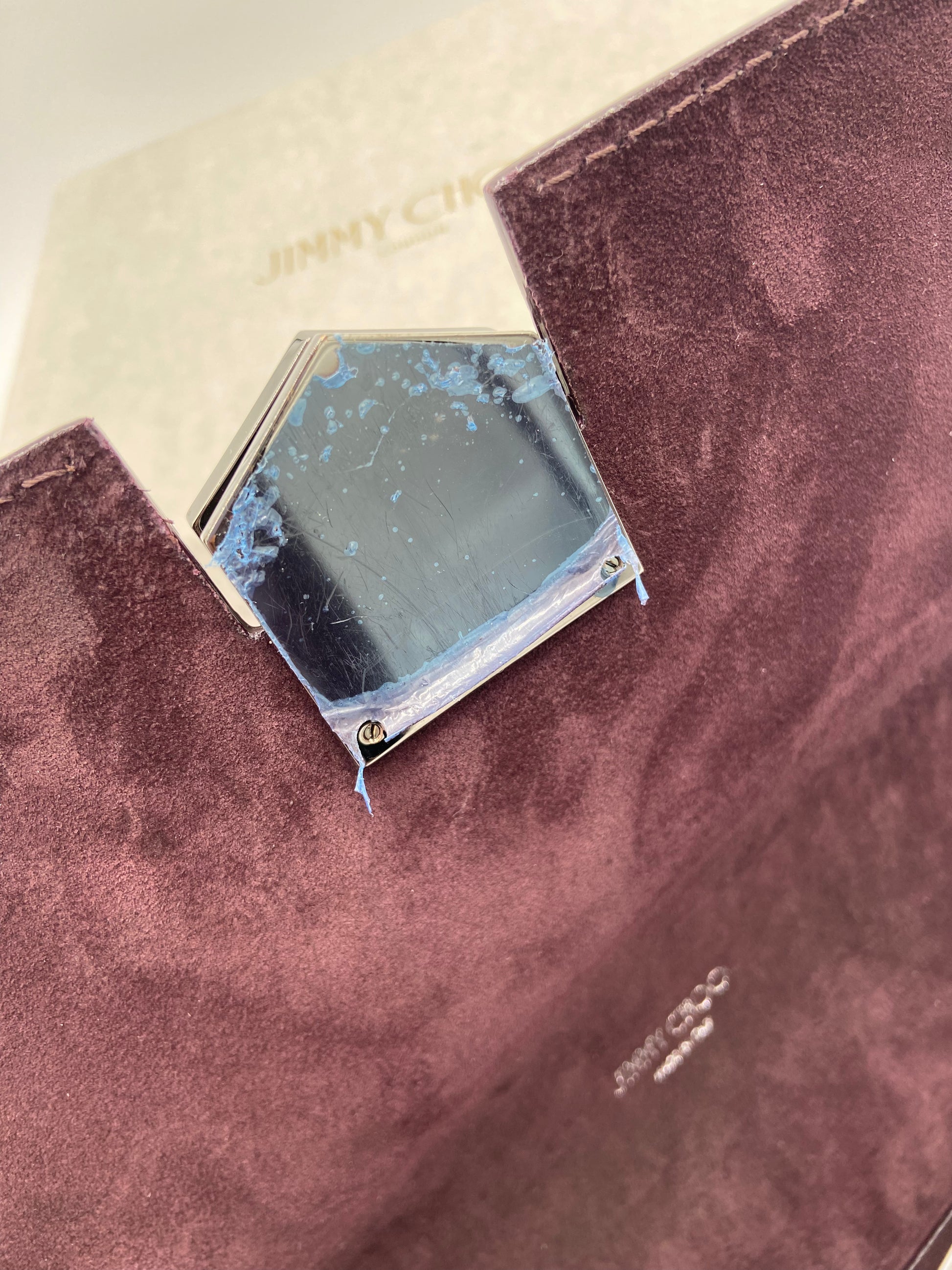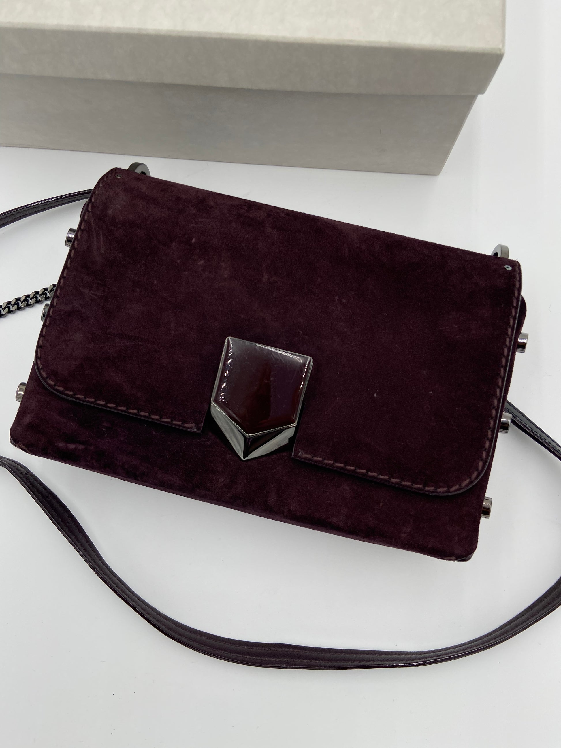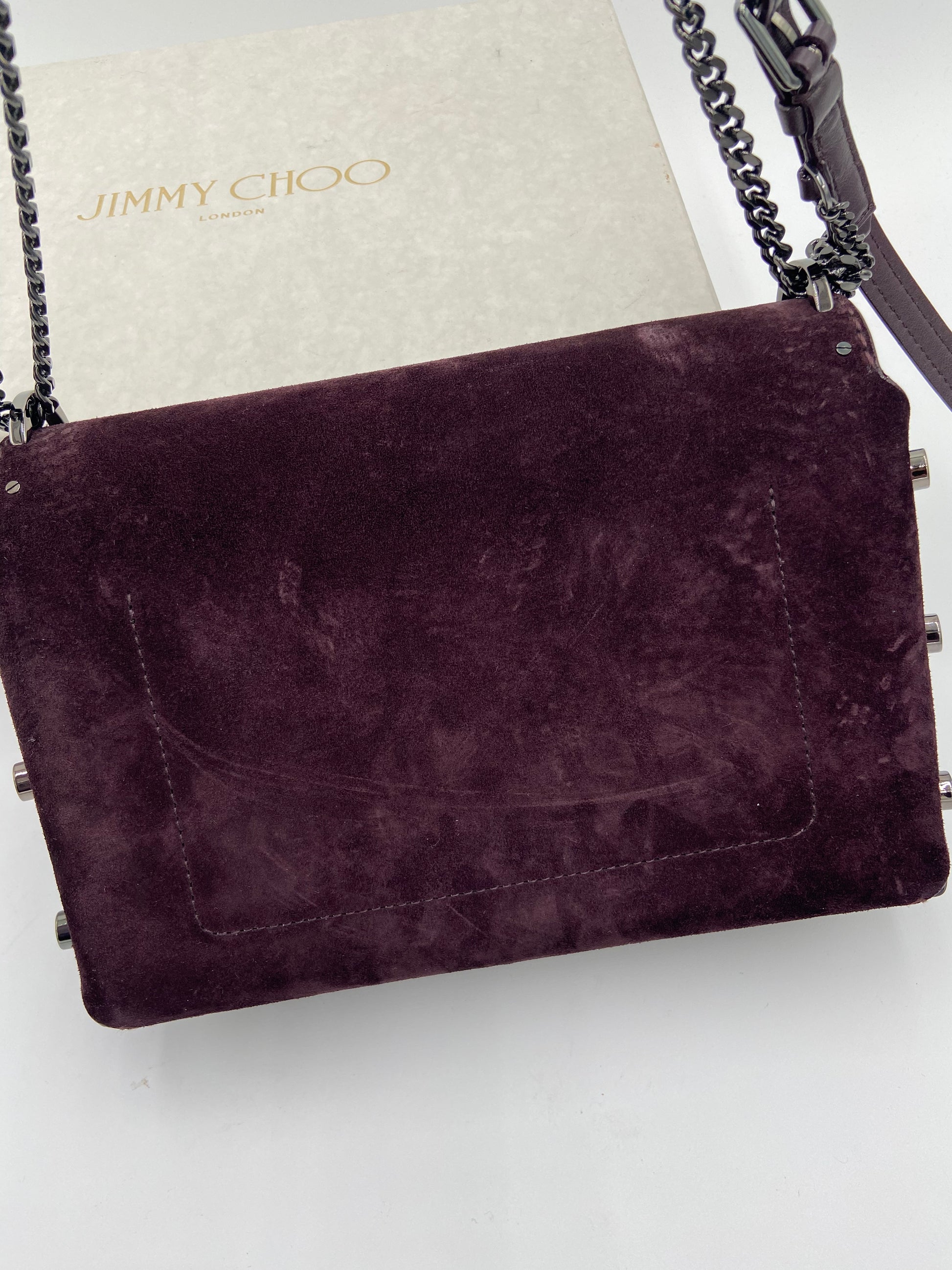 overall great condition. light marks on suede from rubbing - some scratches on front hardware - interior hardware still has stickers on.