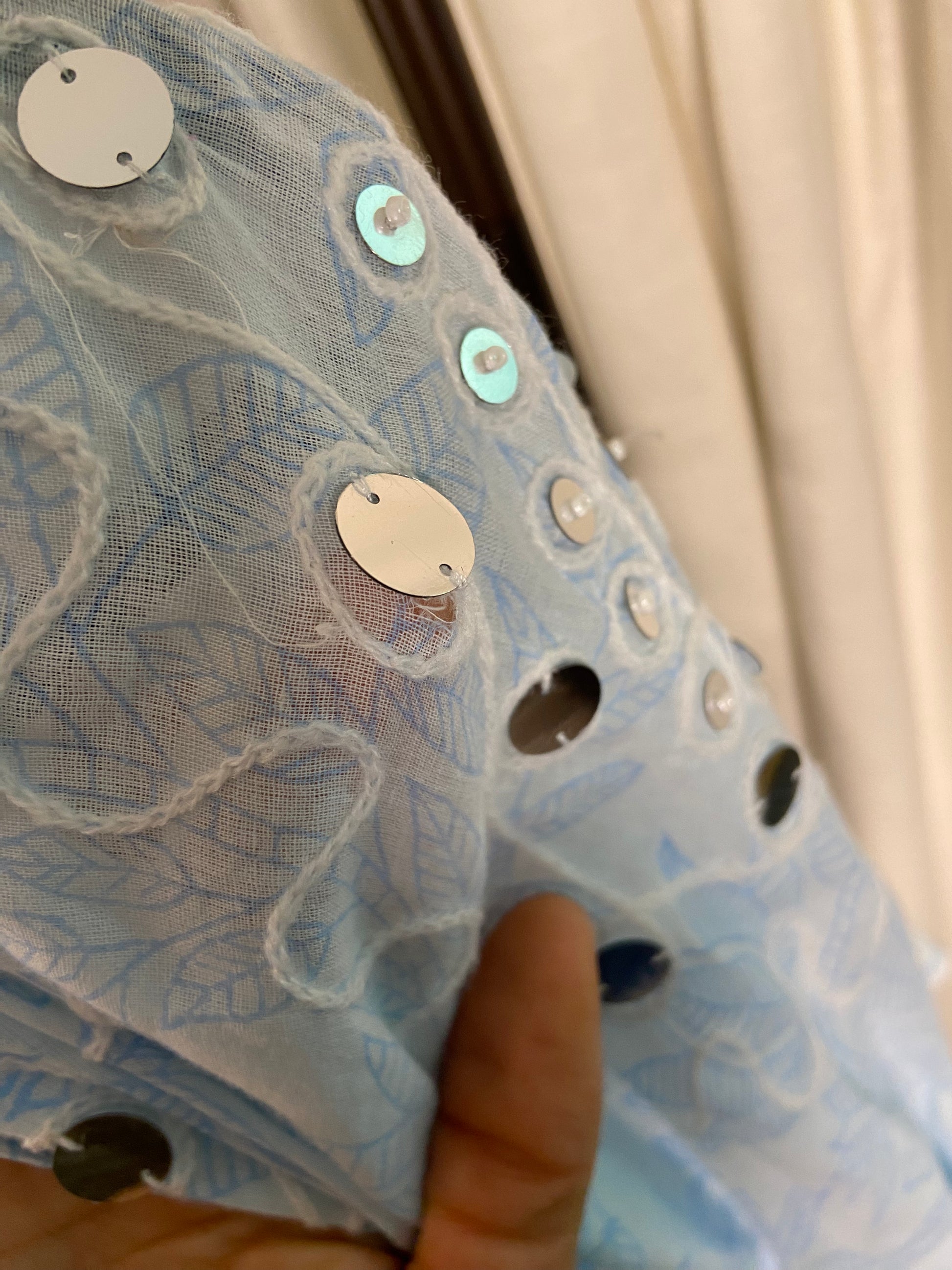 great condition, a few minor flaws as pictured. a couple of the embellishments are slightly bent, small tear by one embellishment