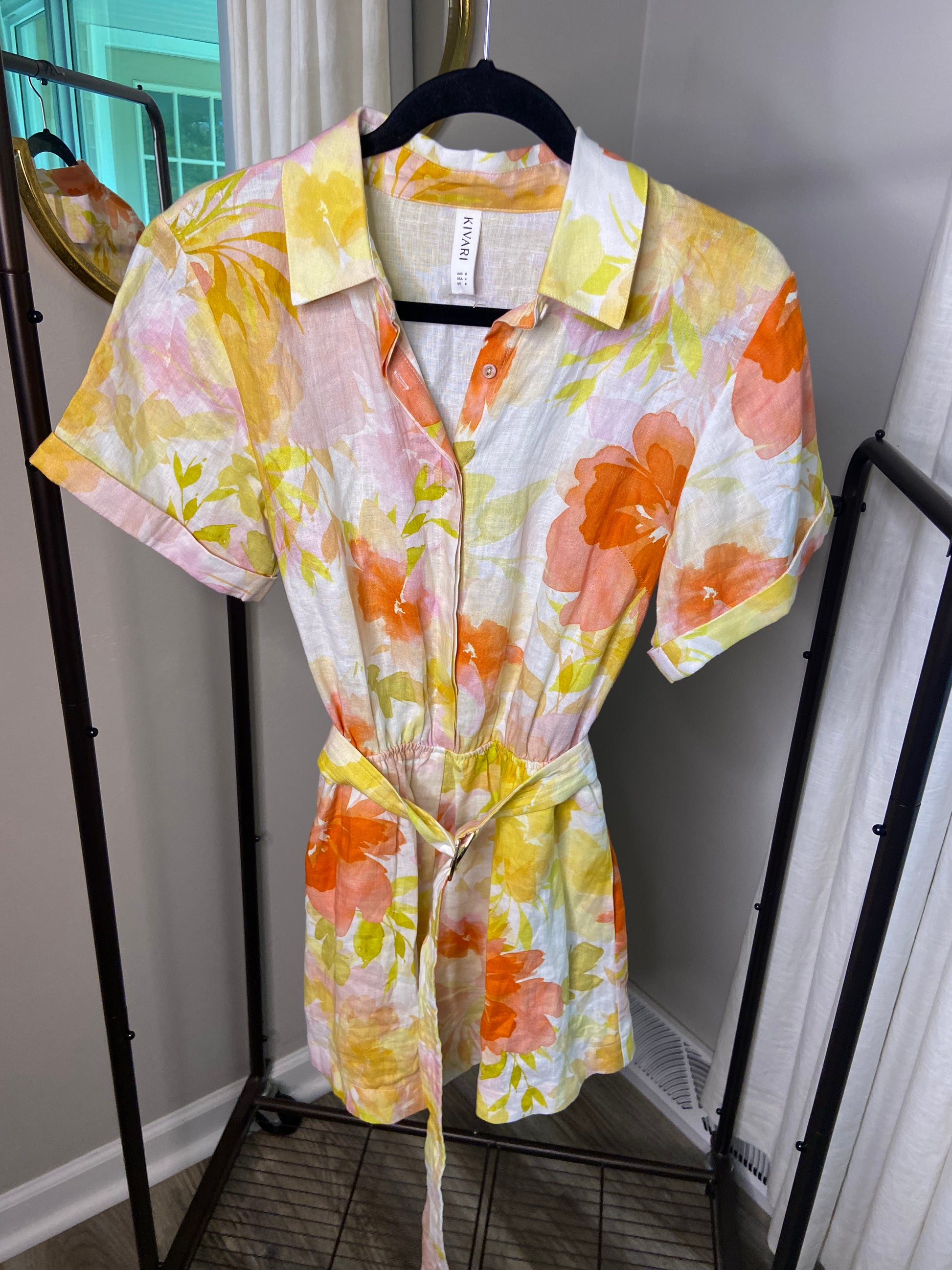 Kivari Printed Short-Sleeve Belted Romper size US 4