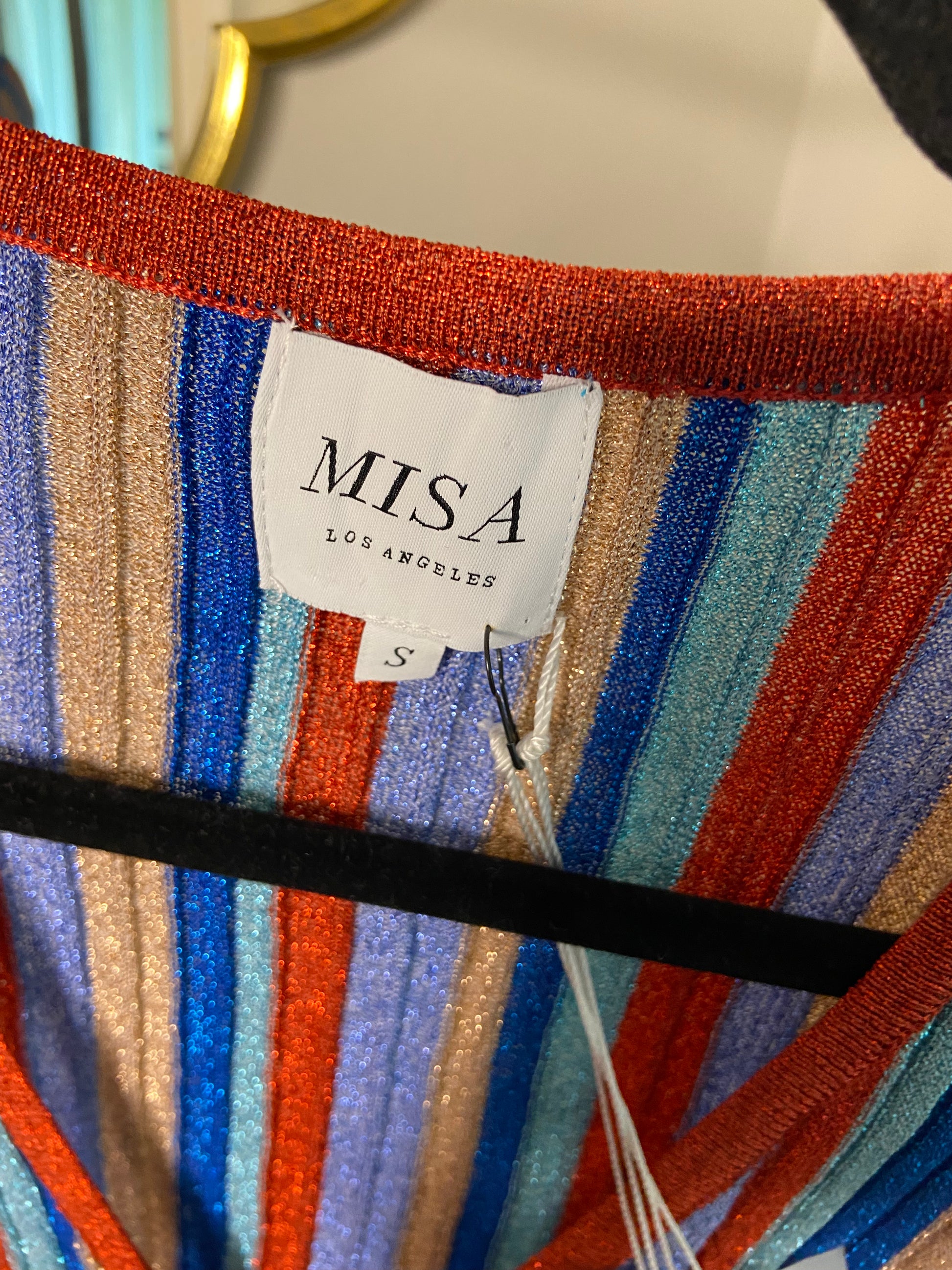 Misa Los Angeles Rafael Stripe Long Sleeve Rib Midi Dress size S