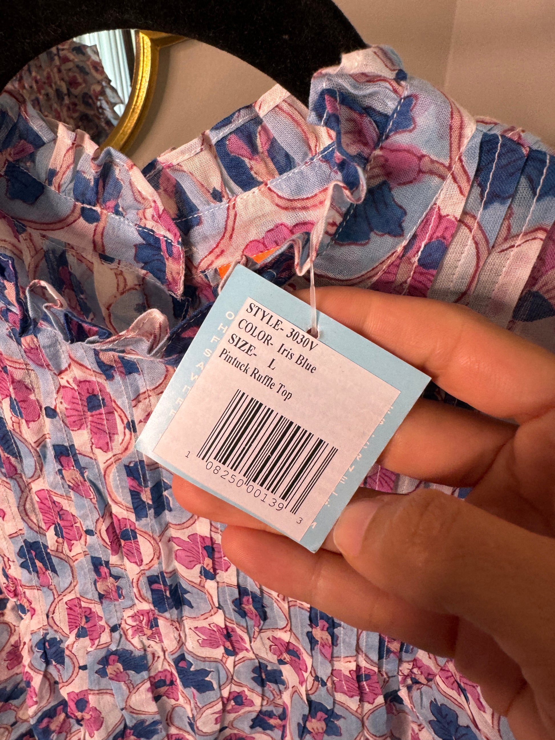 Oliphant Pintuck Ruffle Top size L