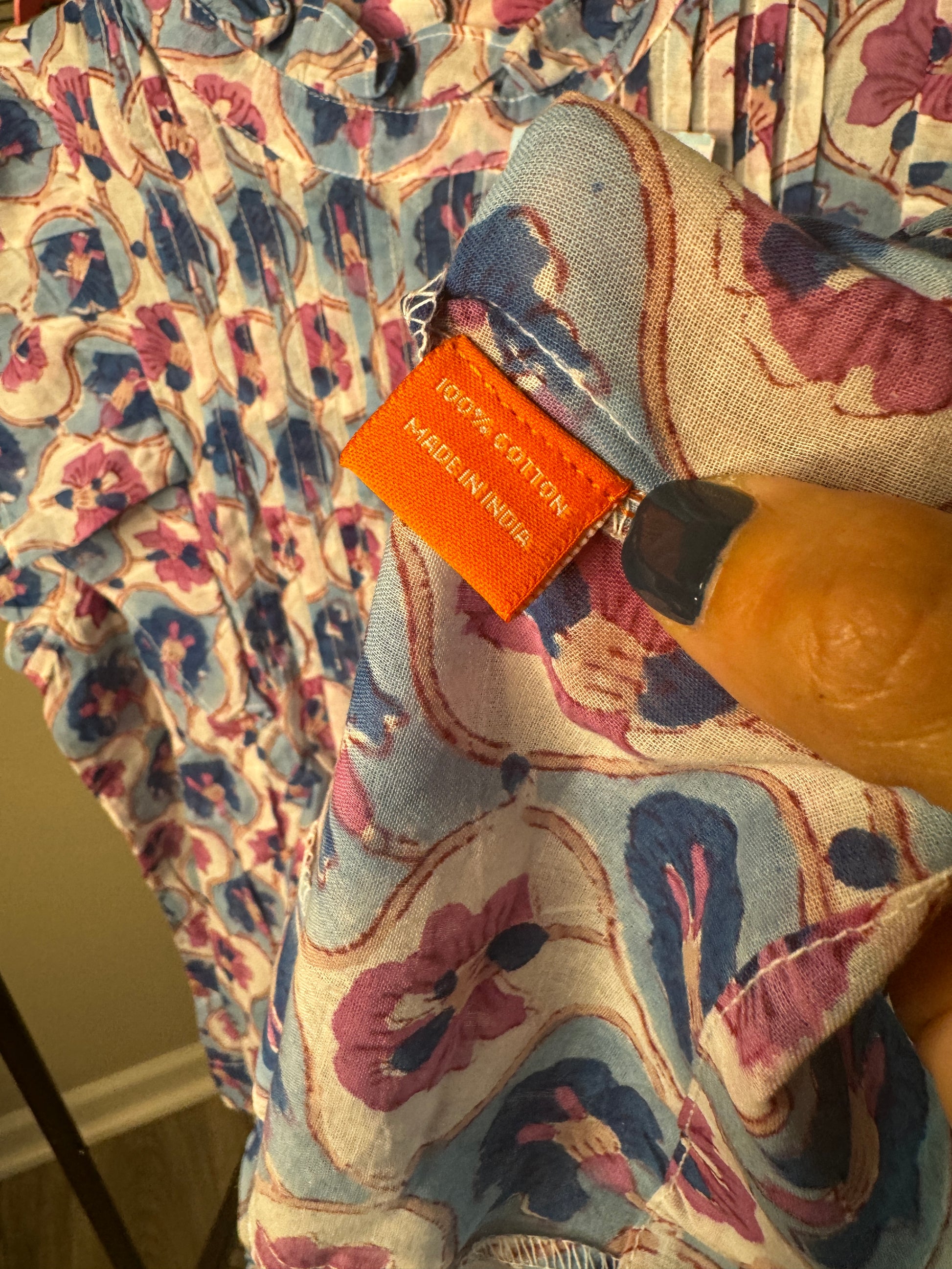"iris blue". 100% cotton