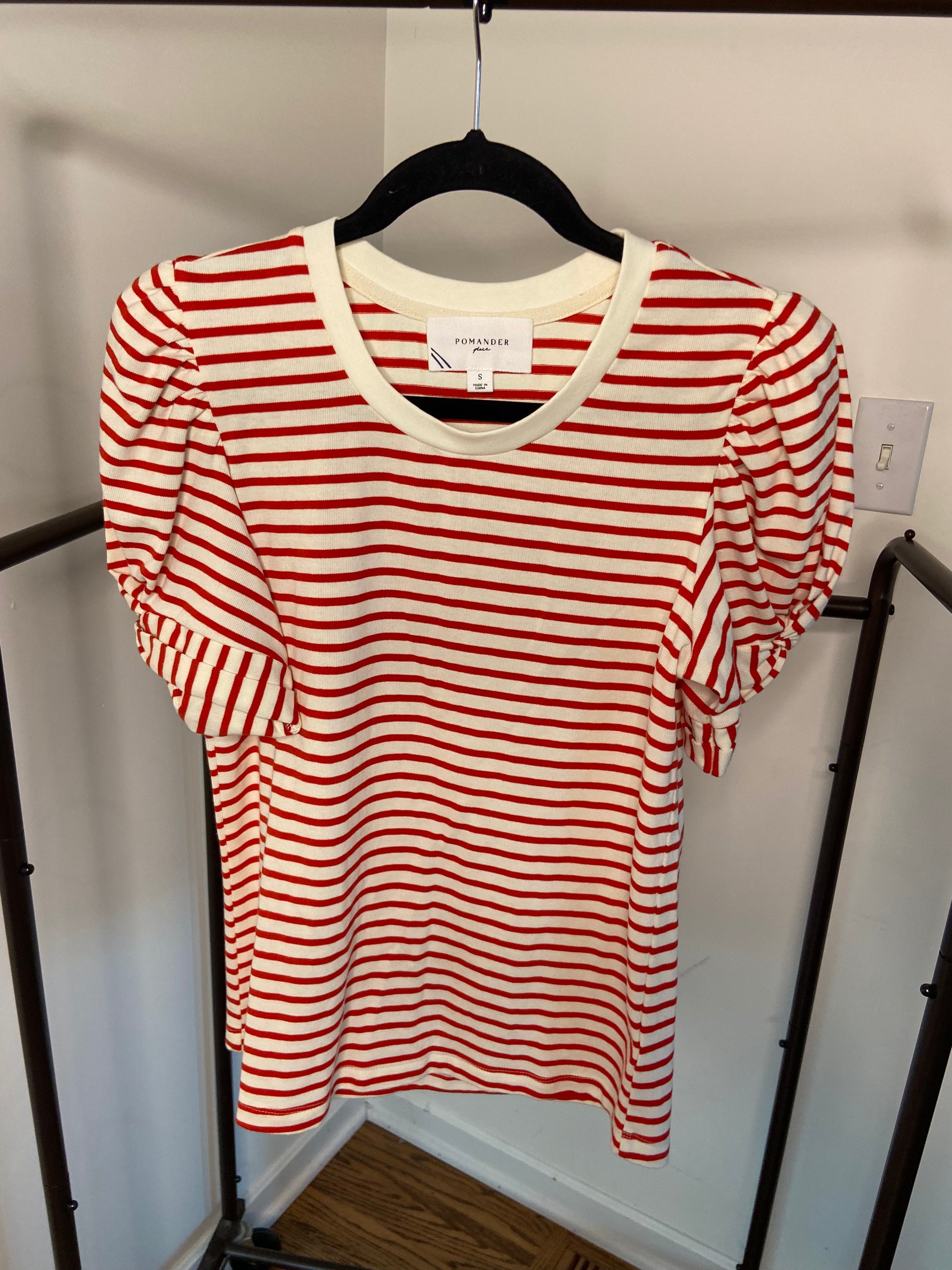Pomander Place Red Striped Vesty Puff Short Sleeve Crewneck size S