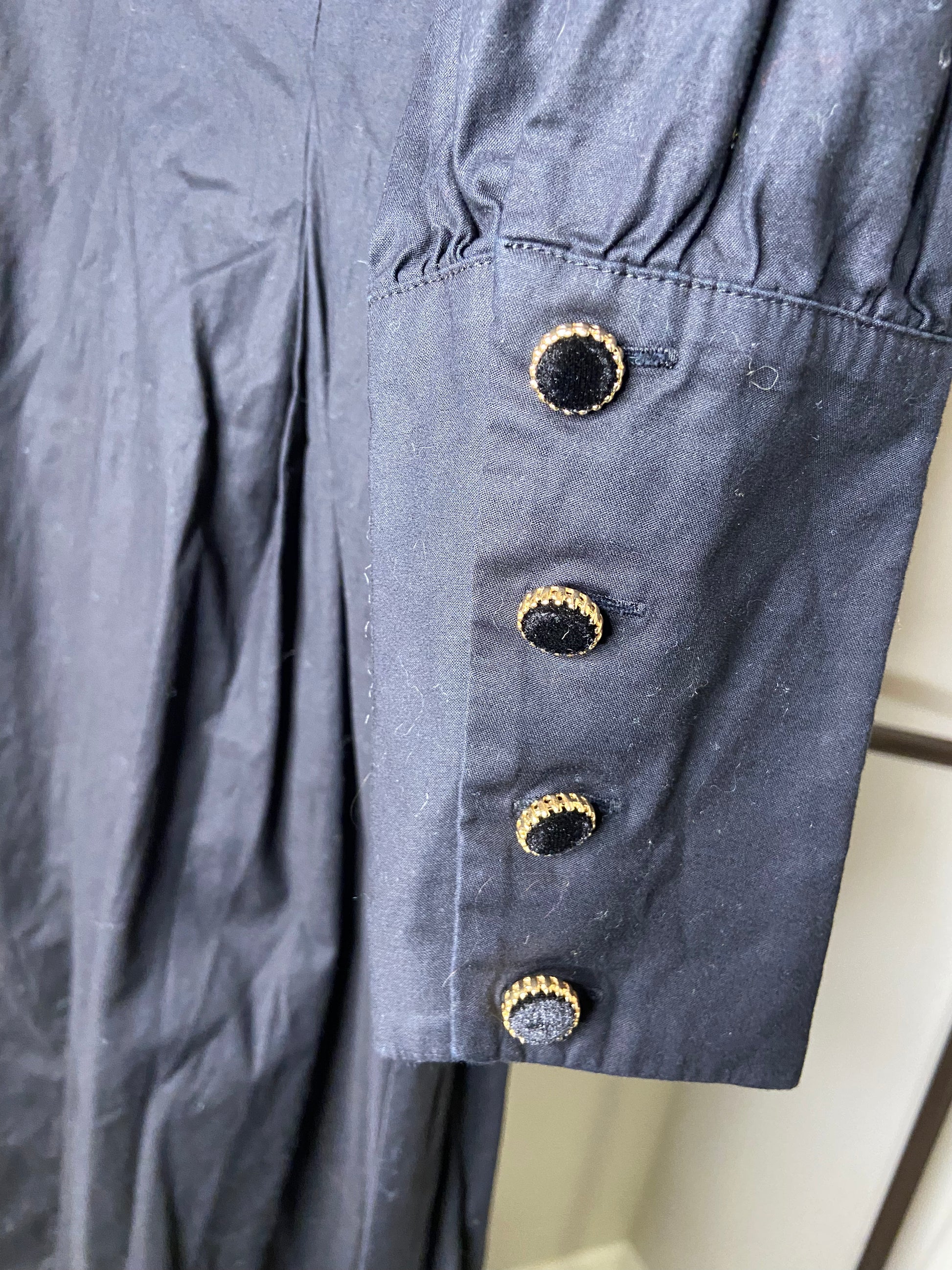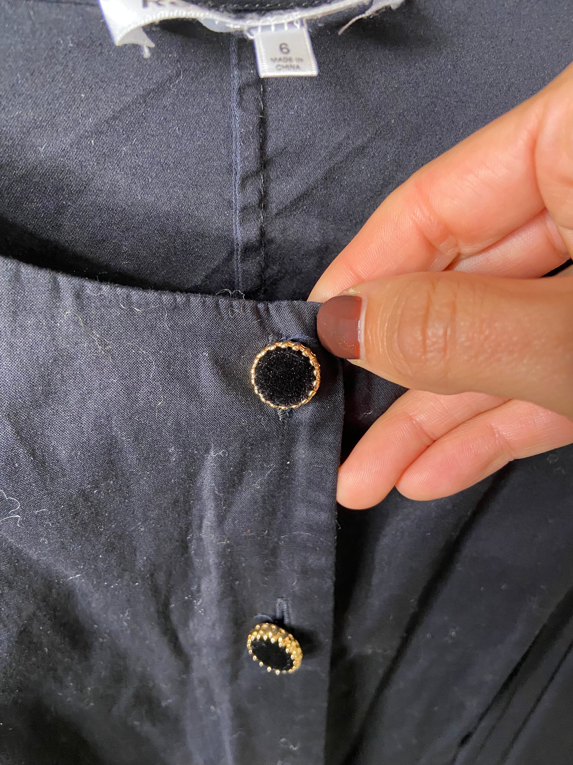 size 6. buttons are velvet with gold around it.