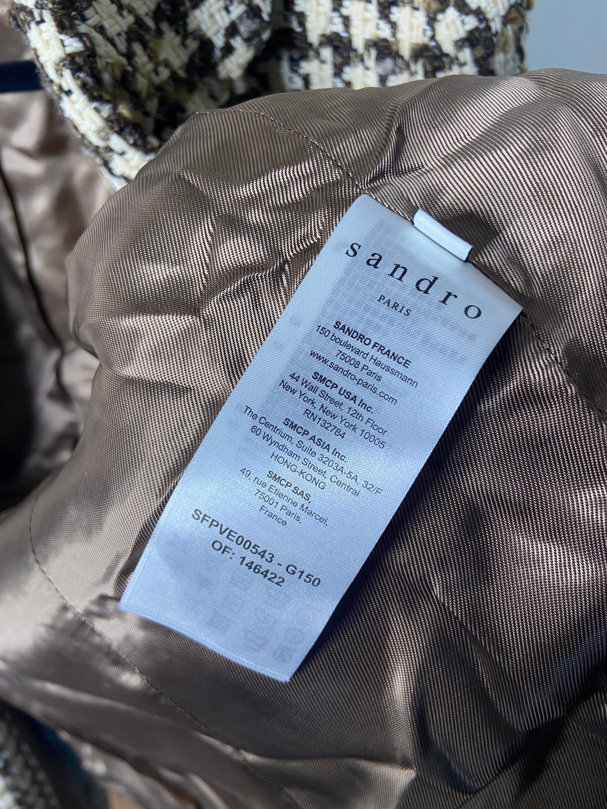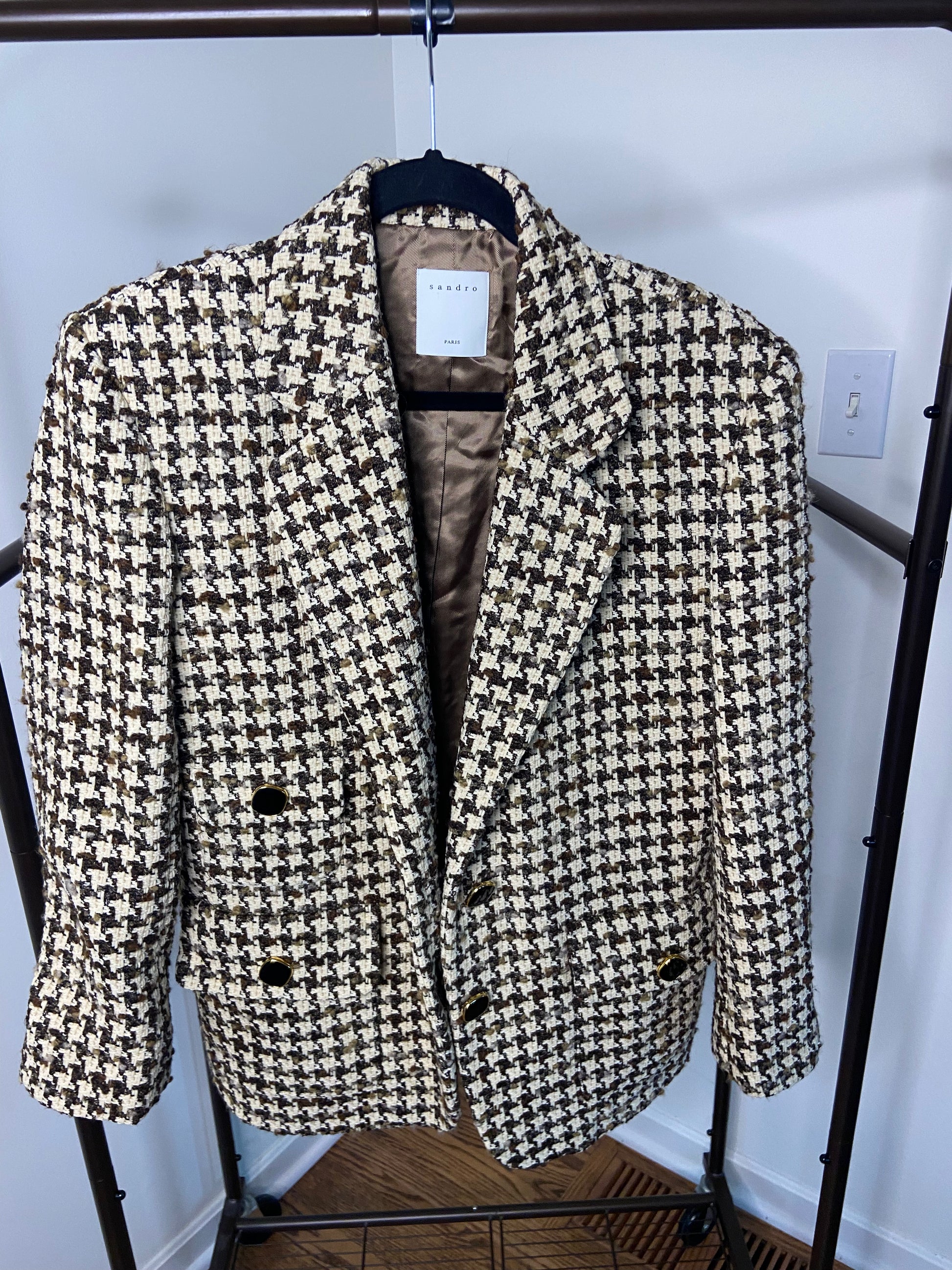 Sandro Brown Esther Houndstooth Jacket size 38 M