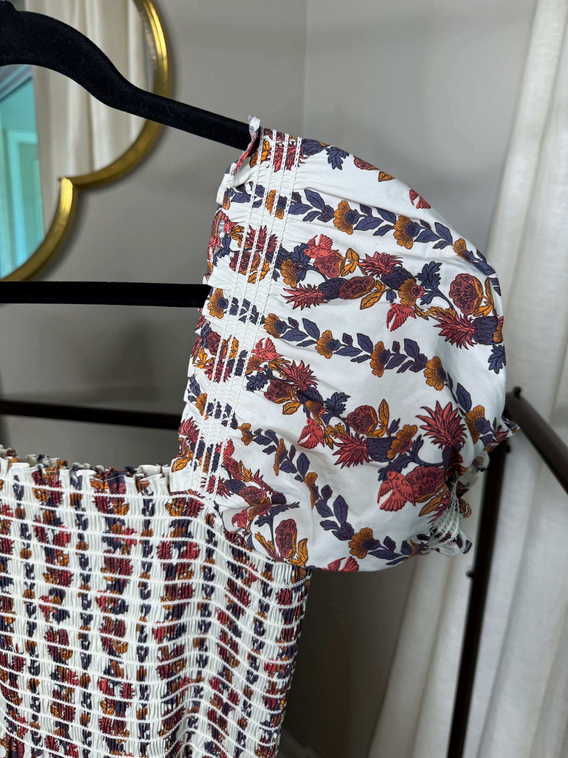 Tory Burch Smocked Satin Cotton Twill Maxi Dress size L