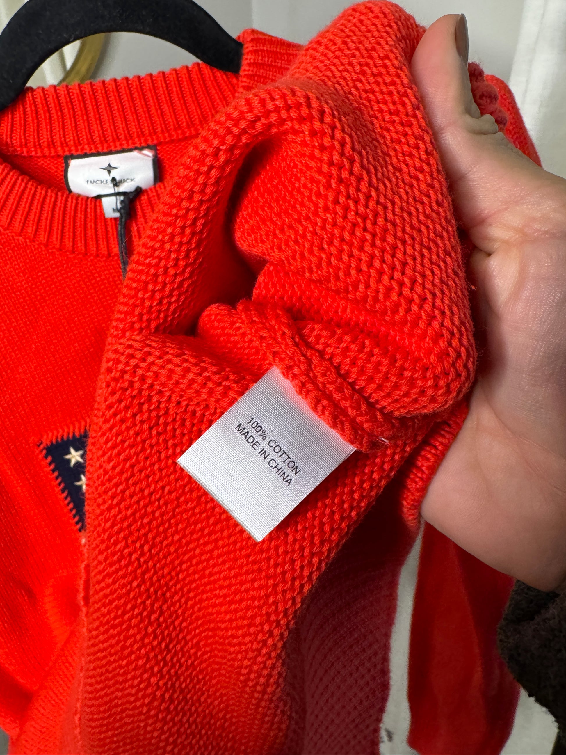 Tuckernuck Americana Cropped Puff Sleeve Flag Sweater size M