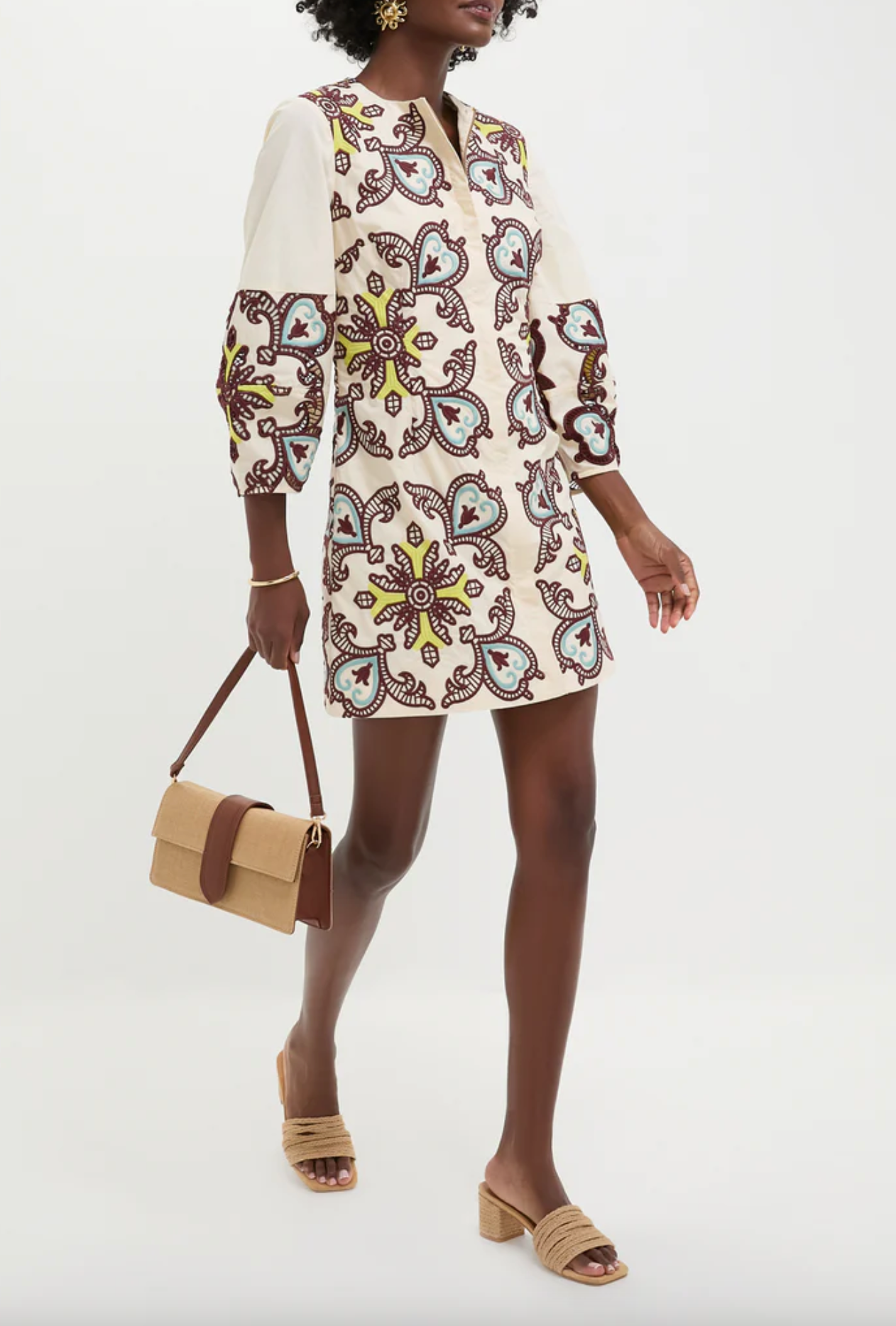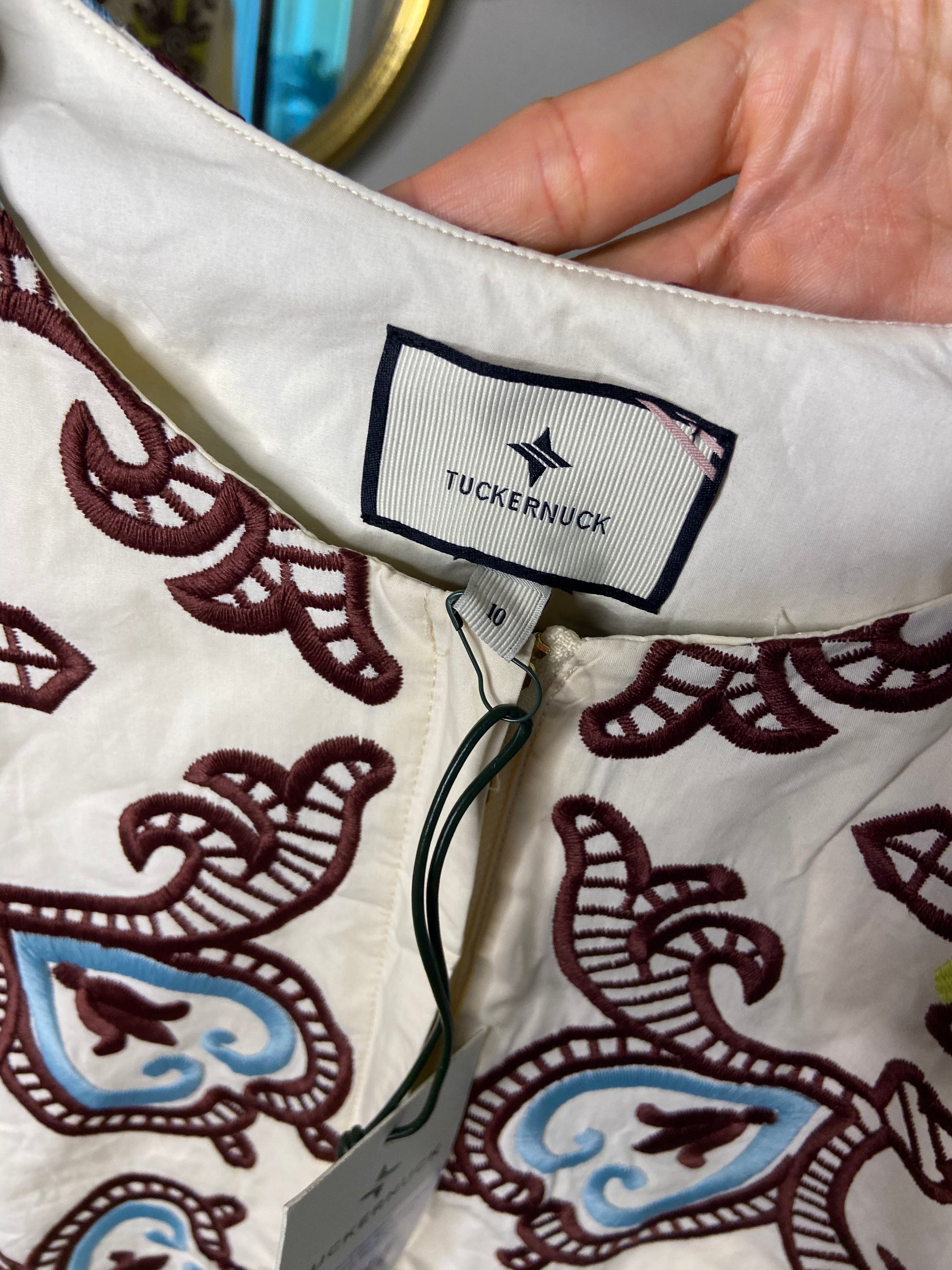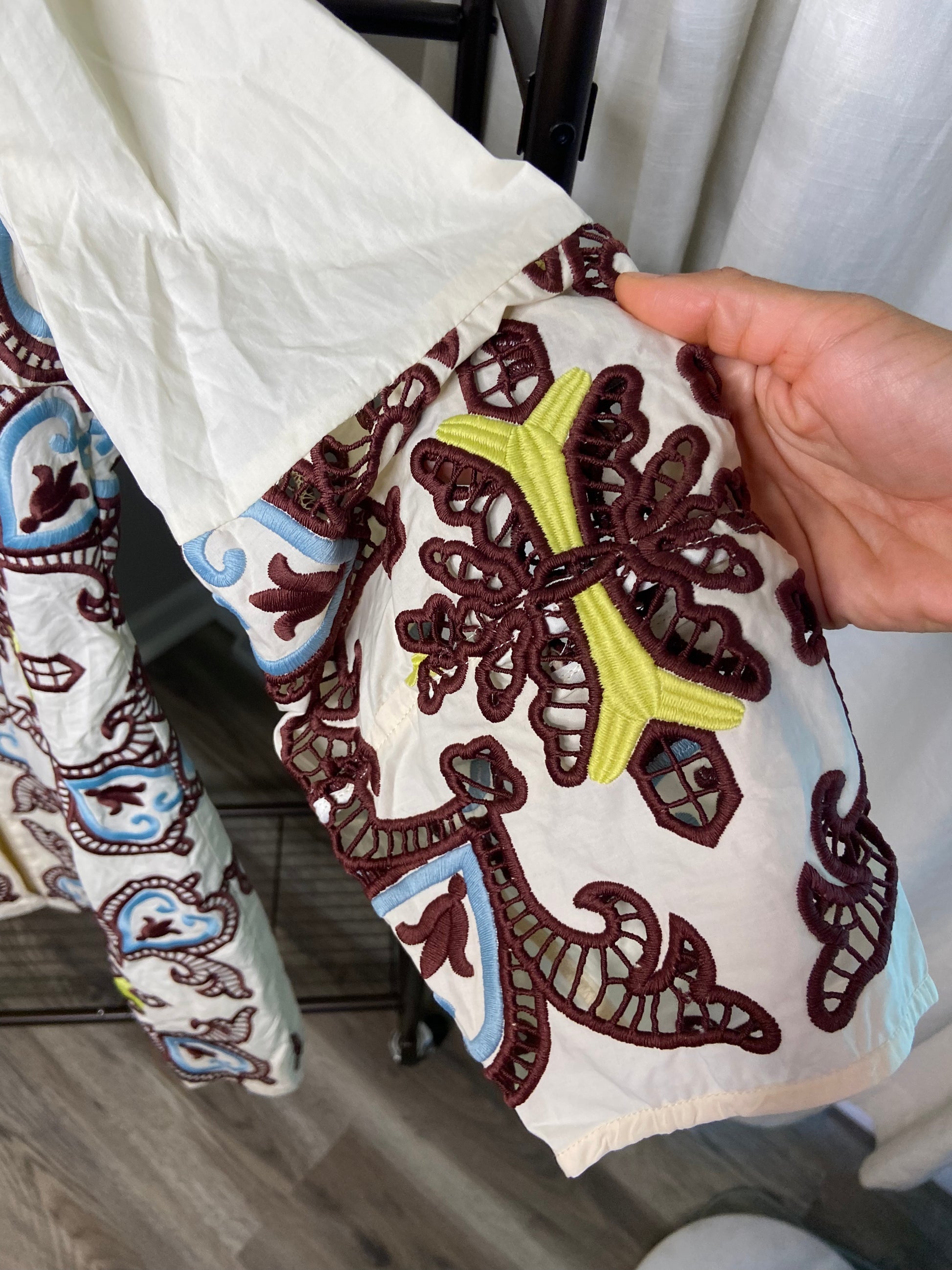 Tuckernuck Citron and Slate Blue Embroidered Long Sleeve Rhoda Tunic Dress size 10