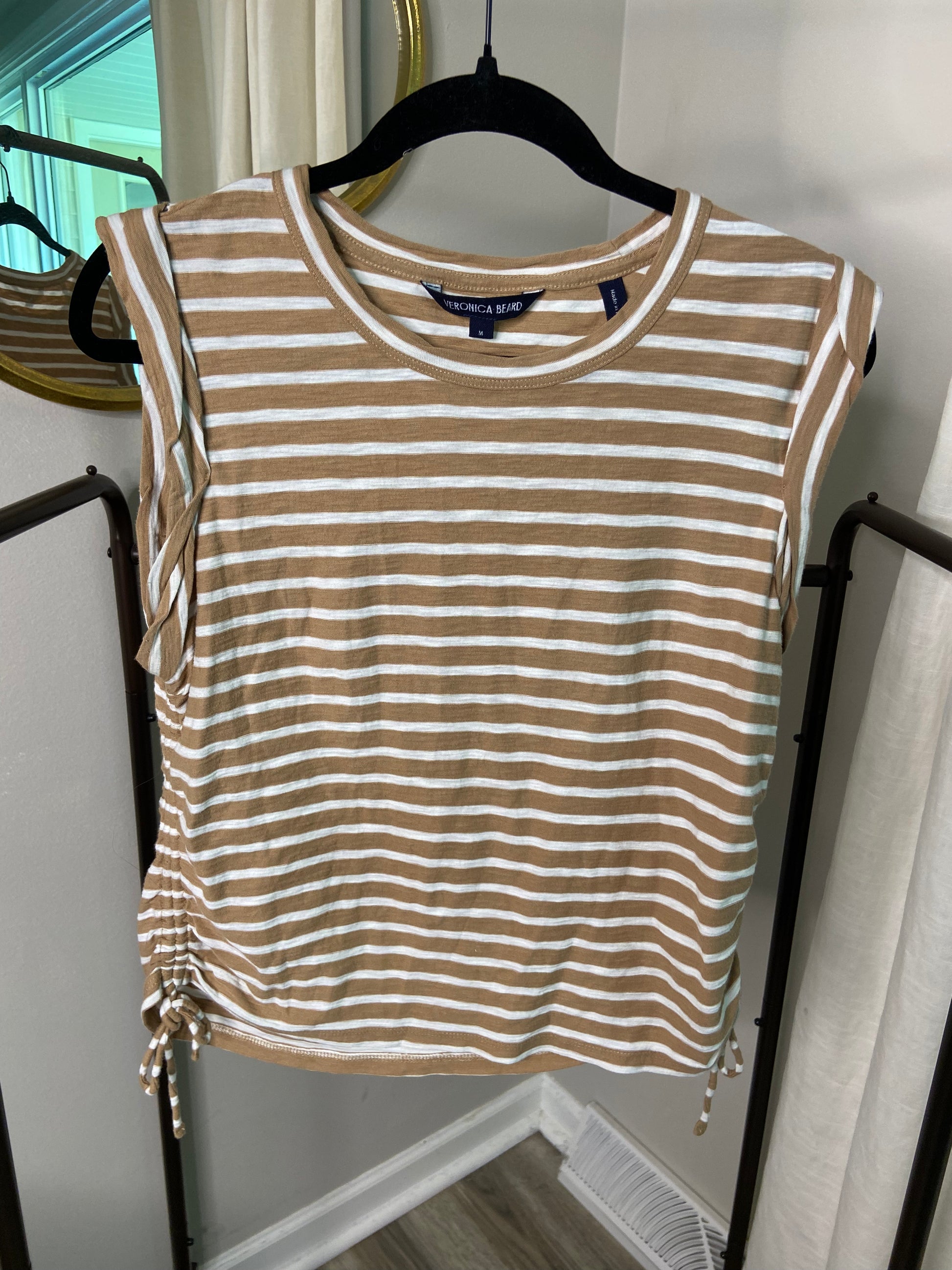 Veronica Beard Vinci Side Ruched Cotton Muscle Tee Tank size M