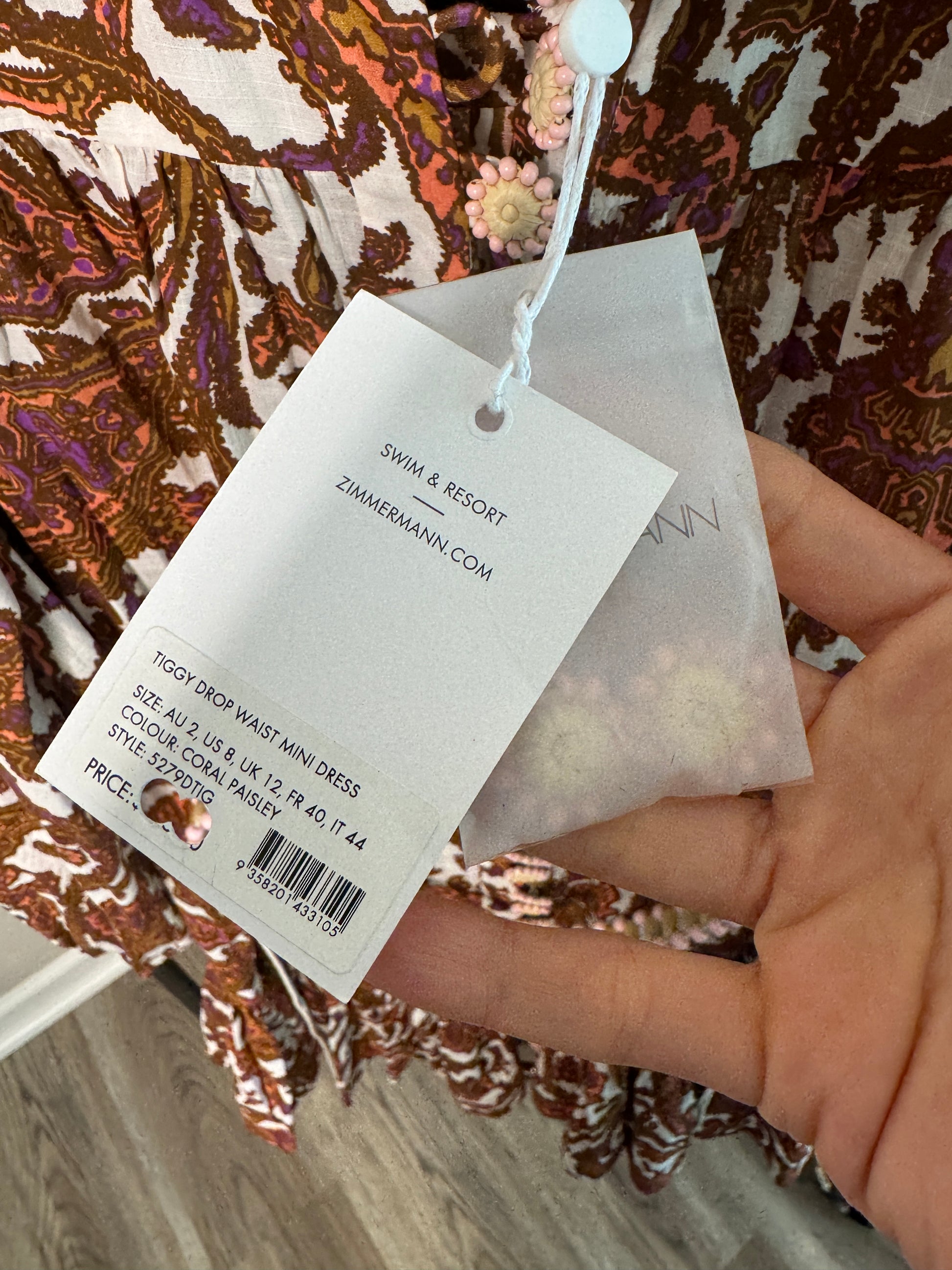 ZIMMERMANN Tiggy Drop Waist Mini Dress size US 8