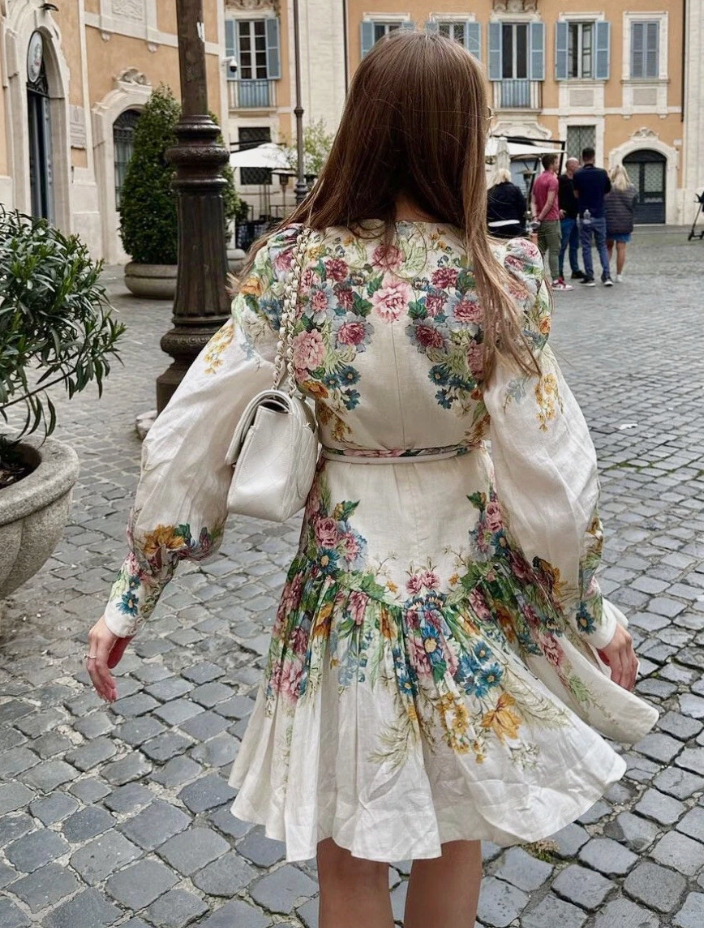 Zimmermann Wavelength Bell Sleeve Belted Mini Dress size US 6